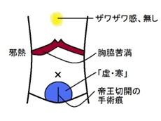 下焦は、帝王切開の手術痕を中心に、「虚」と「寒」がきつく存在します。